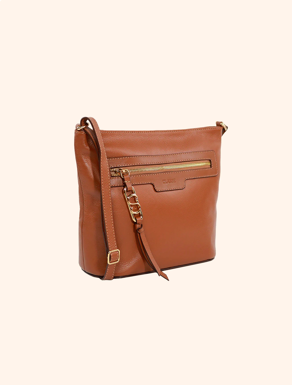 Com visual clean e estrutura leve, esta bolsa transversal da Classe foi pensada para acompanhar a rotina com praticidade. O formato amplo acomoda bem os itens do dia a dia, enquanto o couro macio e o acabamento em dourado mantêm o toque sofisticado característico da marca.