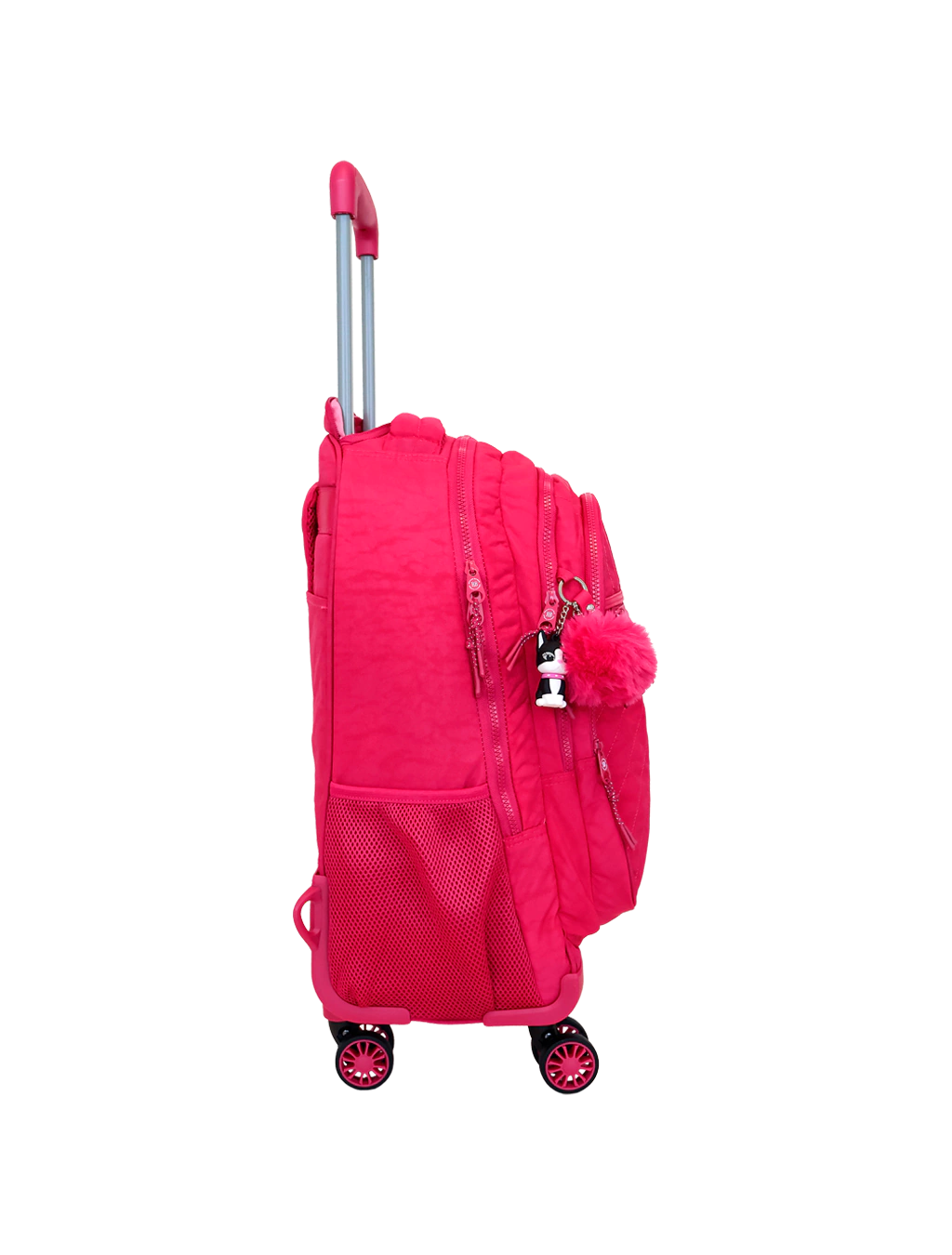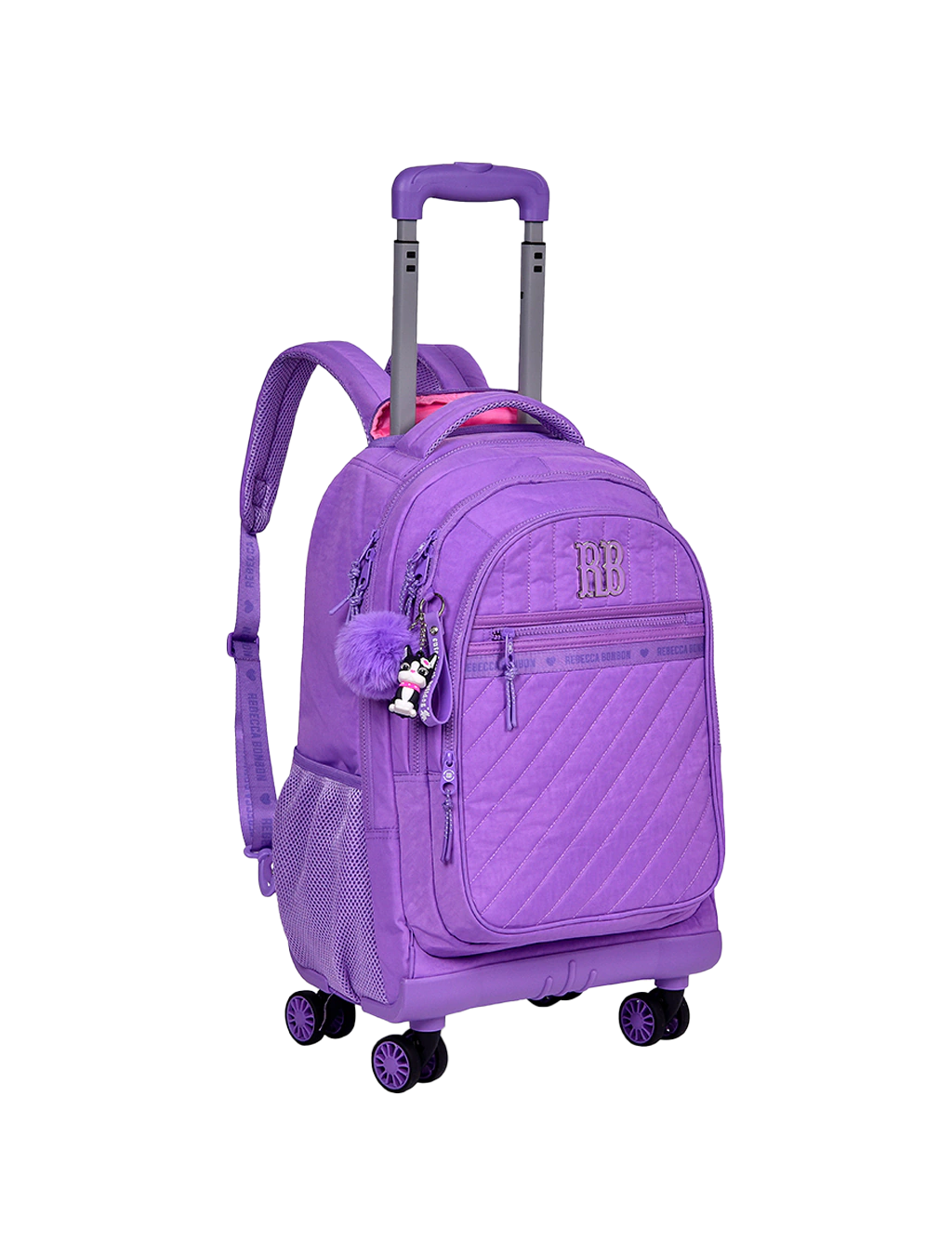 Mochila de Rodinhas Rebecca Bonbon RB24518 19” da Nova Coleção 2025, confeccionadas em crinkle com matelassê, acompanham chaveiros personalizados de pompom e borracha com Rebecca Bonbon em 3D, puxadores dos zíperes personalizados com a logo e com cadarço para facilitar o fechamento. Amplo espaço interno, com bolsos e compartimentos de laptop e tablet para melhor organização. Rodas giro 360º macias para um transporte suave e divertido.